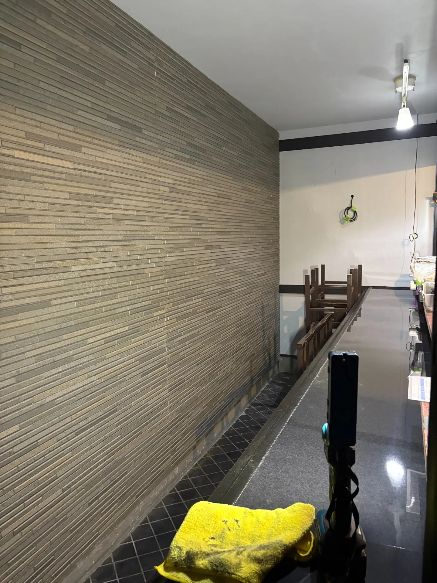 さらに、3段の集成材を使用したオリジナル酒棚も製作🍾🍸